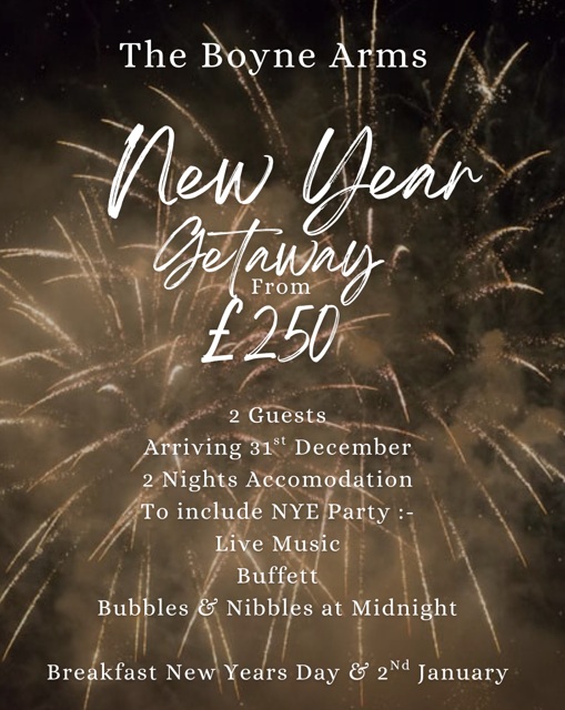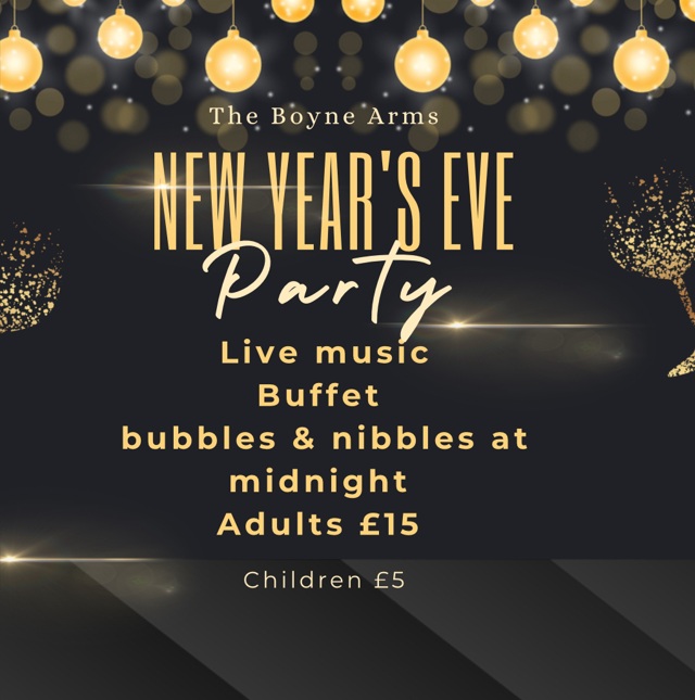 Wednesday 31st December: New Years Eve Party: Live Music, Buffet, Fizz and Nibbles at Midnight.